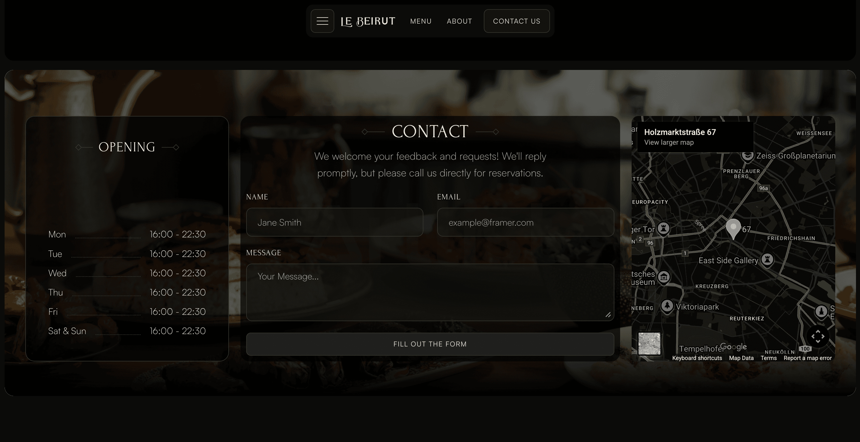 Die Herausforderung bestand darin, die Vielfalt der libanesischen Küche sowie das besondere Ambiente ansprechend darzustellen und gleichzeitig Funktionen wie Speisekarte und Kontakt übersichtlich zu integrieren – sowohl auf Desktop als auch mobil.